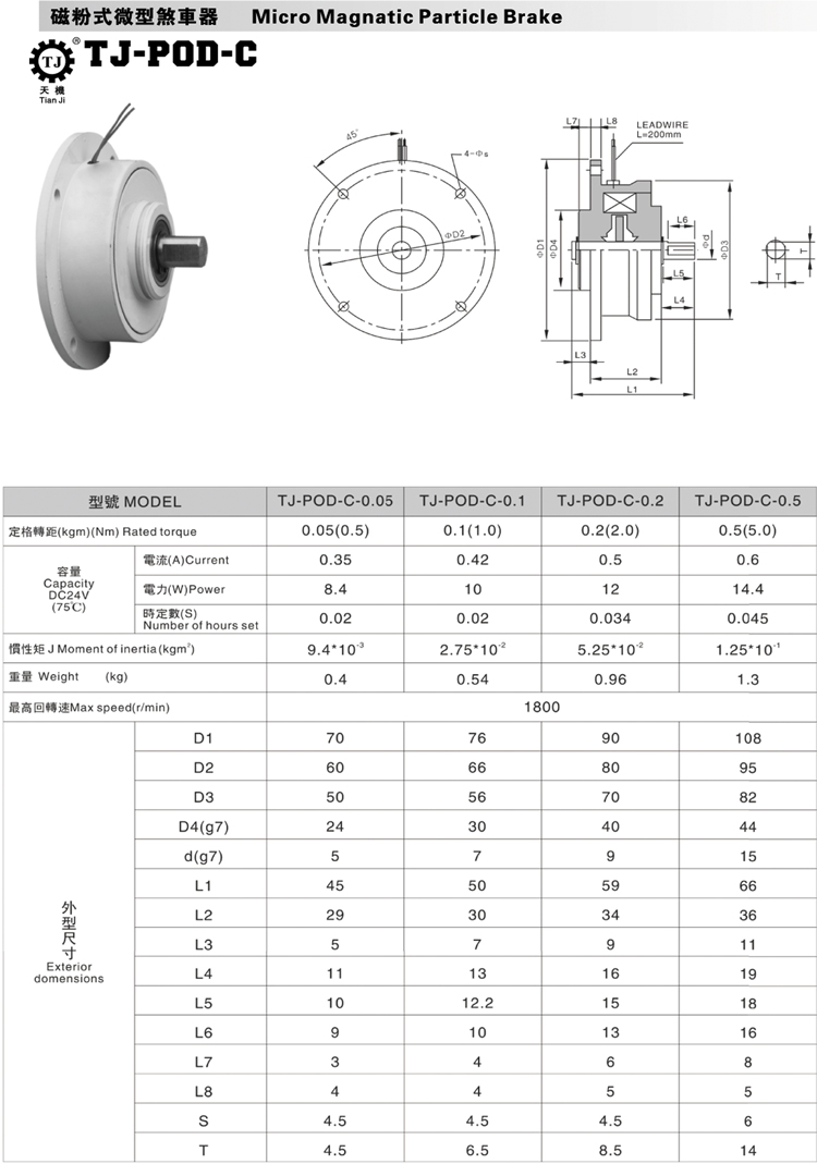 小型磁粉制動(dòng)器又稱(chēng)微型磁粉制動(dòng)器也稱(chēng)磁粉剎車(chē)器,統(tǒng)一的型號(hào)為T(mén)J-POD-C,使用的電壓都是DC24V,它激磁電流雖小,但卻可以輸出較大轉(zhuǎn)矩,從而可以很方便地組成自動(dòng)控制系統(tǒng)。小型磁粉制動(dòng)器價(jià)格和微型磁粉制動(dòng)器價(jià)格也是一樣的,磁粉制動(dòng)器的價(jià)格與轉(zhuǎn)矩大小體積有關(guān),體積越大價(jià)格越貴,轉(zhuǎn)矩越大價(jià)格越貴,如小型磁粉制動(dòng)器價(jià)格按轉(zhuǎn)矩大小價(jià)格分為0.5Nm小型磁粉制動(dòng)器價(jià)格為1500元,1Nm小型磁粉制動(dòng)器價(jià)格為1450元,2Nm小型磁粉制動(dòng)器價(jià)格為1400元,5Nm小型磁粉制動(dòng)器價(jià)格為1500元。