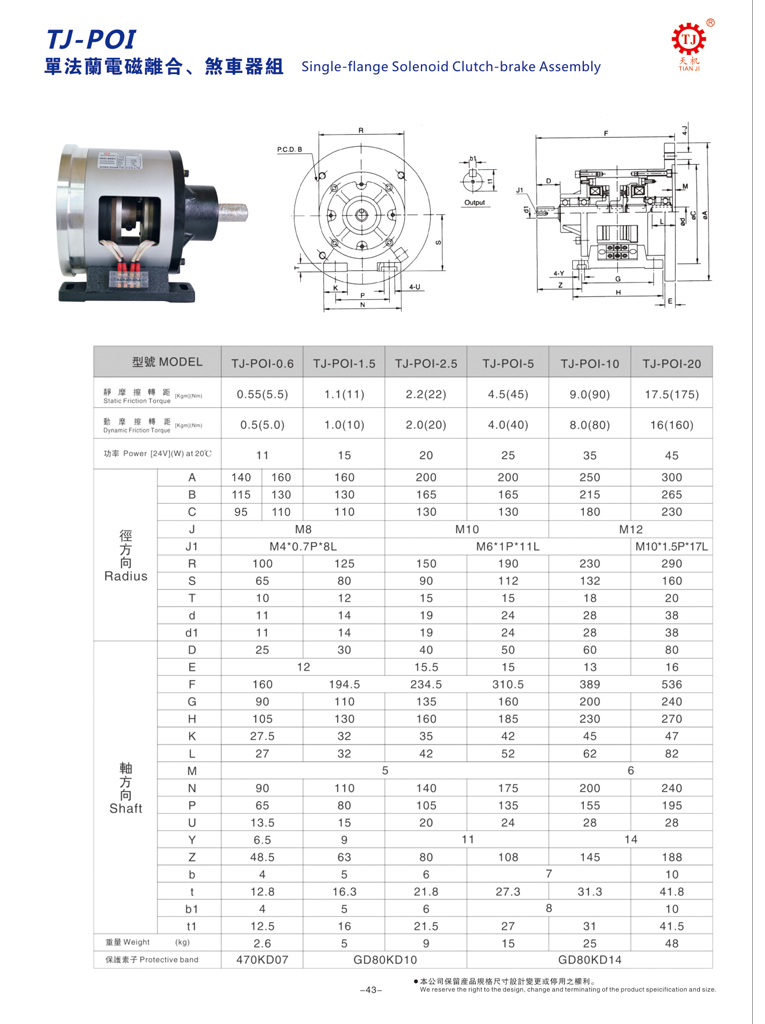 東莞天機(jī)傳動(臺灣天機(jī)牌)是生產(chǎn)單法蘭電磁離合剎車器,法蘭式電磁離合剎車器的廠家,全稱為POI型單法蘭電磁離合剎車器組合體,主要由一個TJ-A1型電磁離合器與一個TJ-B1型電磁制動器組合的集成組體。電磁離合剎車器應(yīng)用廣泛、結(jié)構(gòu)簡易、可高頻運(yùn)轉(zhuǎn)、使用安全等。
