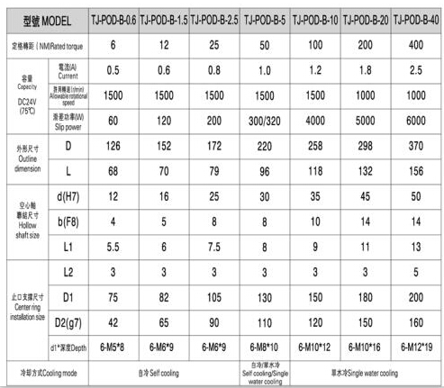 空心孔式磁粉制動(dòng)器尺寸參數(shù)表!東莞天機(jī)傳動(dòng)孔式磁粉制動(dòng)器即空心旋轉(zhuǎn)型磁粉制動(dòng)器,