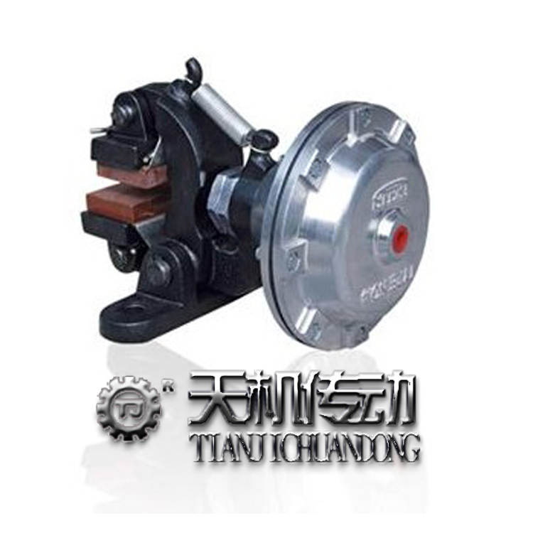 東莞天機傳動生產銷售的DBM-10油壓碟式制動器,DBM-20油壓碟式制動器統(tǒng)稱油壓碟式制動器,是裝設于車輛剎車系統(tǒng)上,其包括有對應剎 車盤片的滑座、定位在車輛上的本體,該滑座則配合復位彈簧滑設在本體上。且本體配合滑座設有一控制閥組,該本體對應該控制閥組設有一個連接車輛油壓系統(tǒng)的 油壓槽,而油壓槽則以迫掣組件迫掣剎車盤片;藉油壓增壓將本體的迫掣組件推動 剎車來令片夾掣剎車盤片進行剎車動作,藉剎車慣性作用力大于復位彈簧的彈力時 會讓滑座在本體上位移,而滑座的位移量到達默認值(設計為慣性力較大值)時會運 用控制閥組關閉車輛油壓系統(tǒng)的通路,再將油壓槽油壓釋壓,讓剎車壓力在瞬間降 低,并利用一復位彈簧的彈力再讓滑座復位,藉此讓滑座產生往復弧線運作,致使 本發(fā)明的碟式剎車器過度掣緊于該剎車盤片。