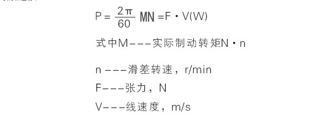 磁粉制動器、磁粉離合器的選型一般以所需傳遞最大轉(zhuǎn)矩為依據(jù)來選定,并注意保證實(shí)際使用的滑差功率,應(yīng)小于技術(shù)參數(shù)的允許滑差功率,余量大點(diǎn)更能延長使用壽命。計算公式: