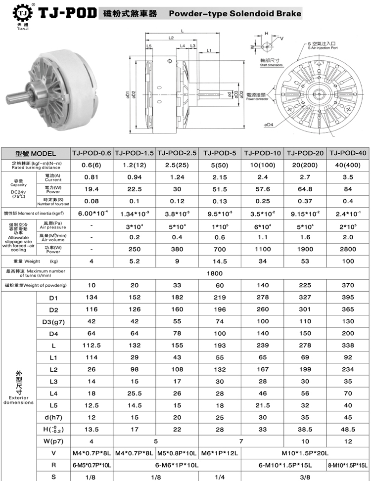 以下是天機傳動單軸磁粉制動器安裝尺寸參數圖