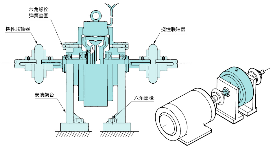 伸出軸型磁粉離合器安裝示例圖,需要請咨詢我們東莞天機傳動;